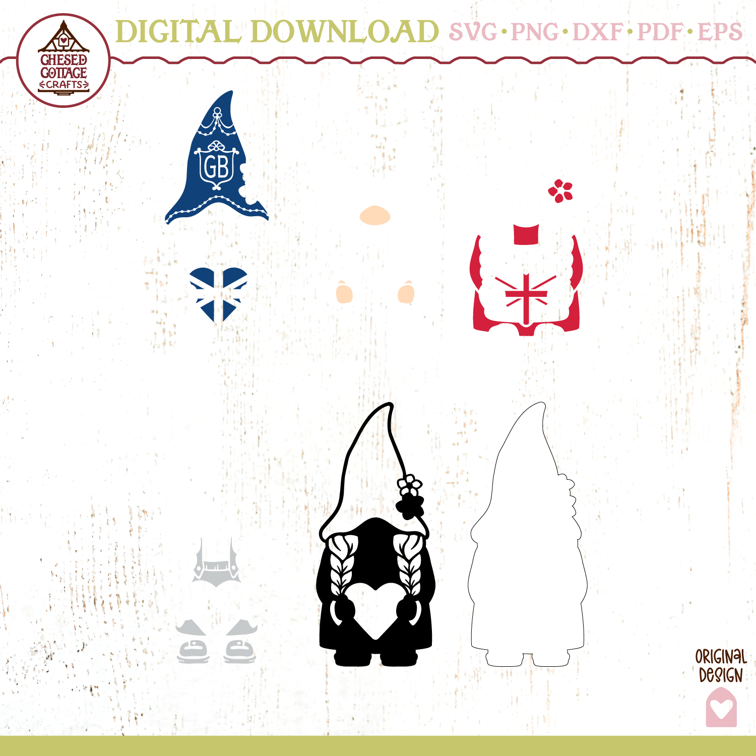 This cute British girl gnome design is a digital download that contains high quality craft cut and print files that have been created to work for cutting machines, like Cricut and Silhouette, sublimation printers, laser machines and more. Use this design for many types of projects for home decor items, apparel or your own inspired creation.