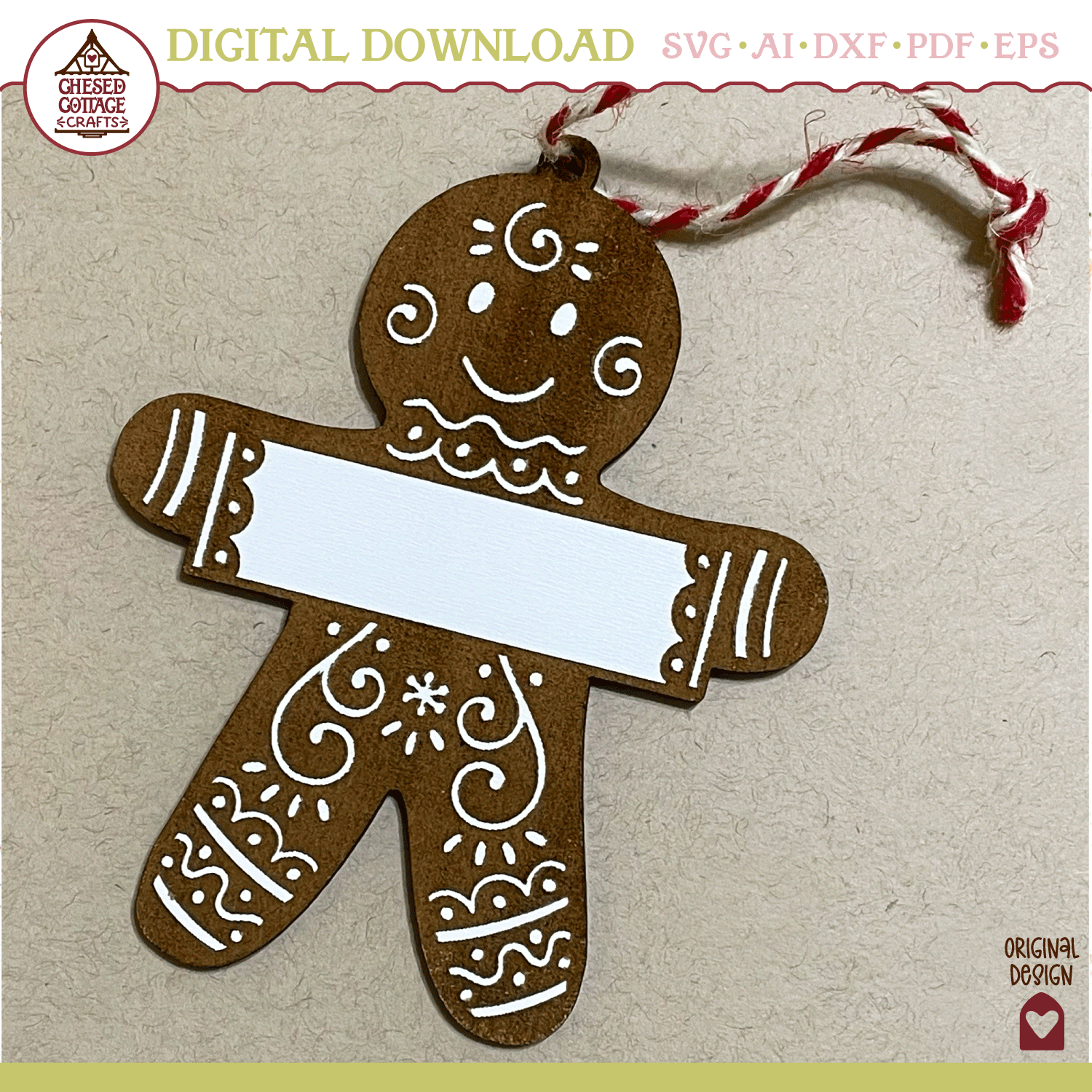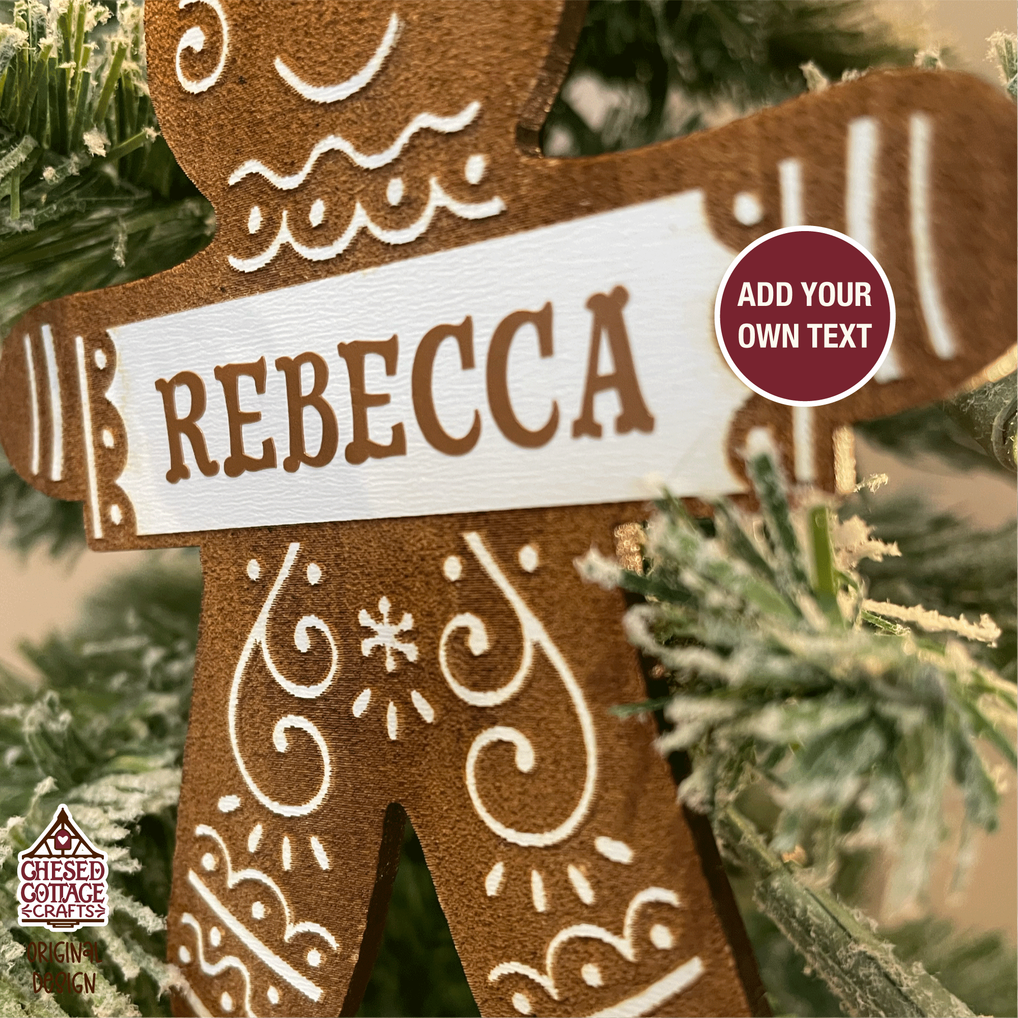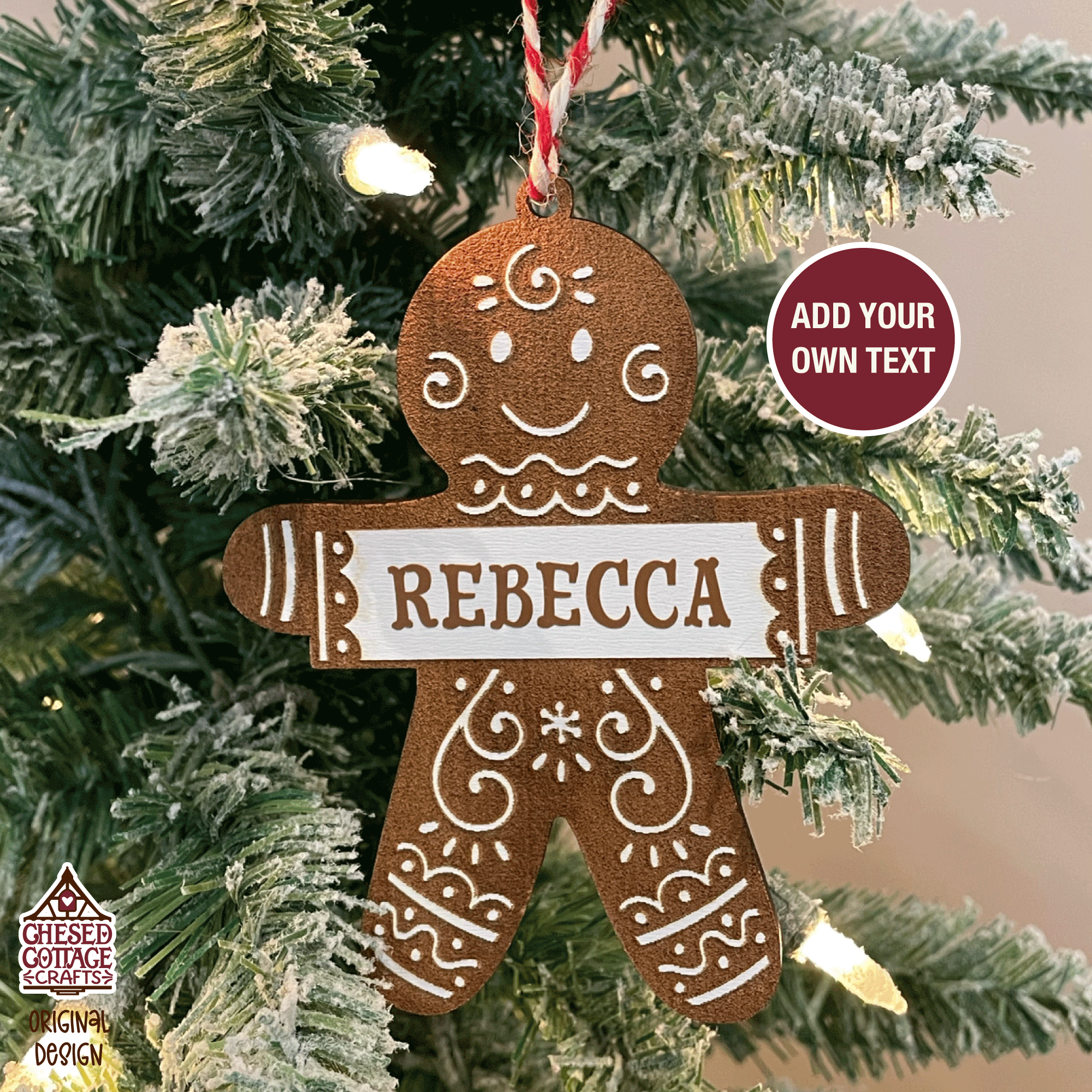 This Laser Christmas Gingerbread Man Ornament design is a digital download that contains high quality craft cut files that have been created to work for laser machines, like Glowforge or Xtool. This file has been tested on a Glowforge. Customize with your own text.