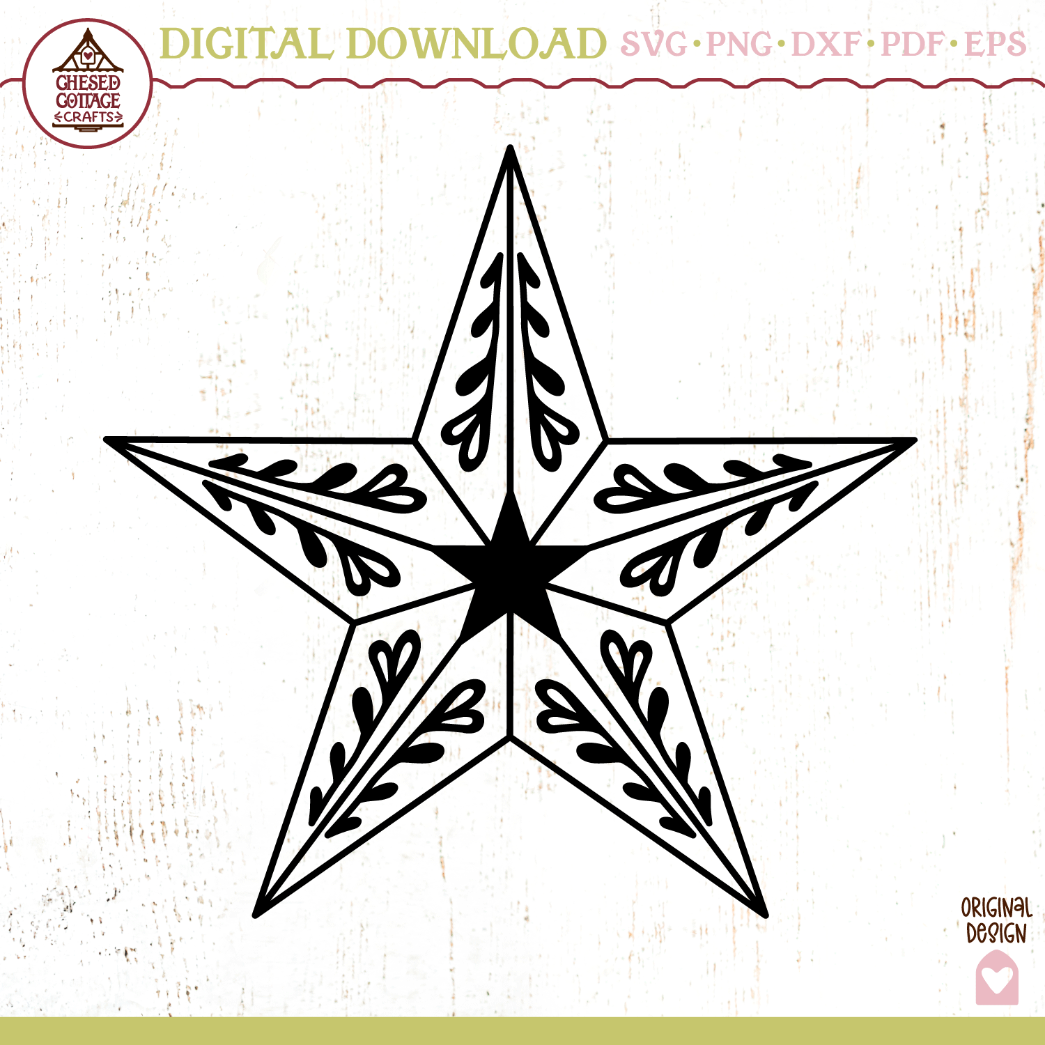 This pretty decorative star design is a digital download that contains high quality craft cut and print files that have been created to work for cutting machines, like Cricut and Silhouette, sublimation printers, laser machines and more. Use this design for many types of projects for home decor items, apparel or your own inspired creation.