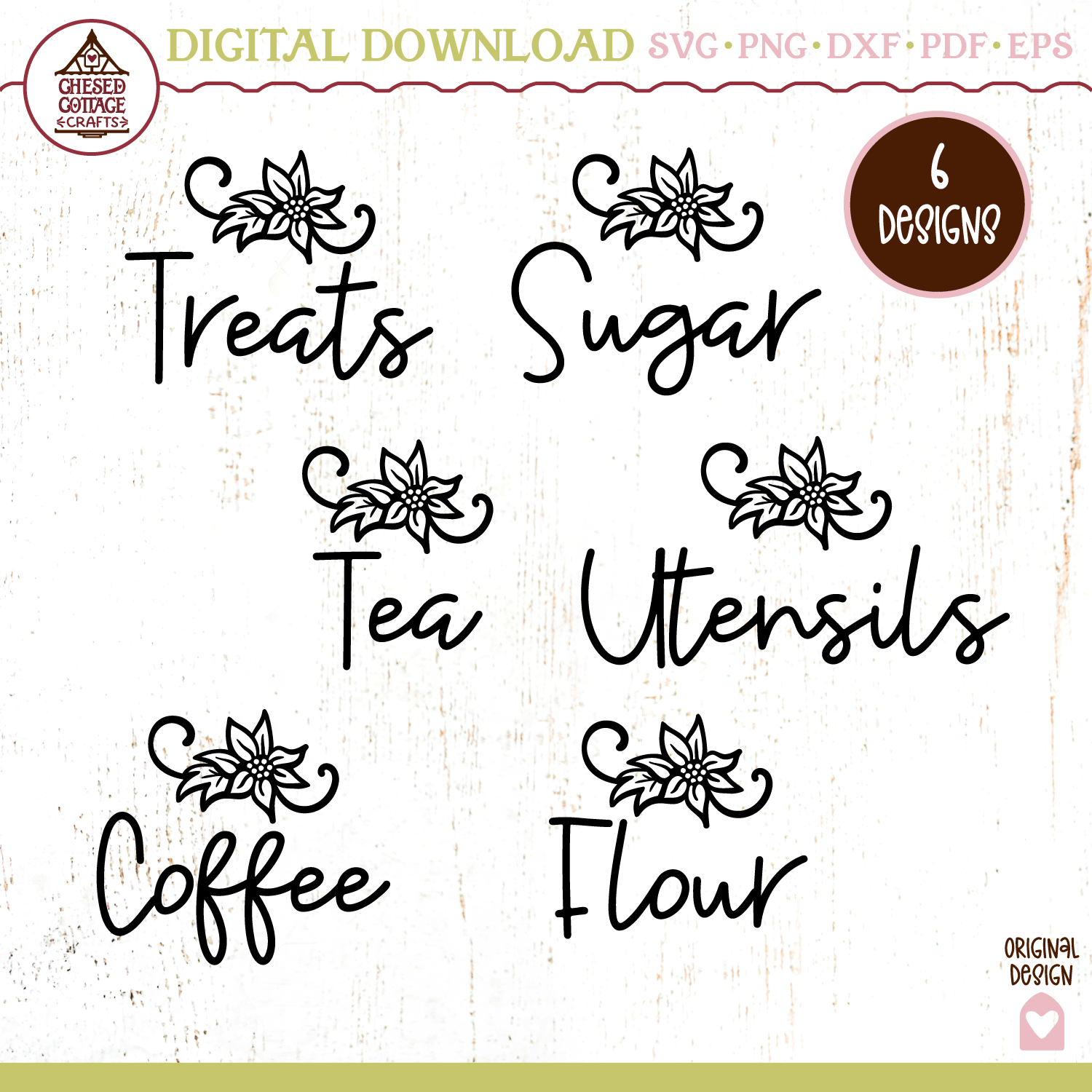 This Floral Canister Label set design is a digital download that contains high quality craft cut and print files that have been created to work for cutting machines, like Cricut and Silhouette and more.