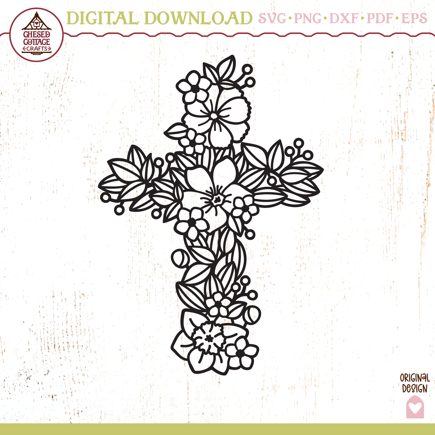 This Floral Pattern Cross design is a digital download that contains high quality craft cut and print files that have been created to work for cutting machines, like Cricut and Silhouette and more.