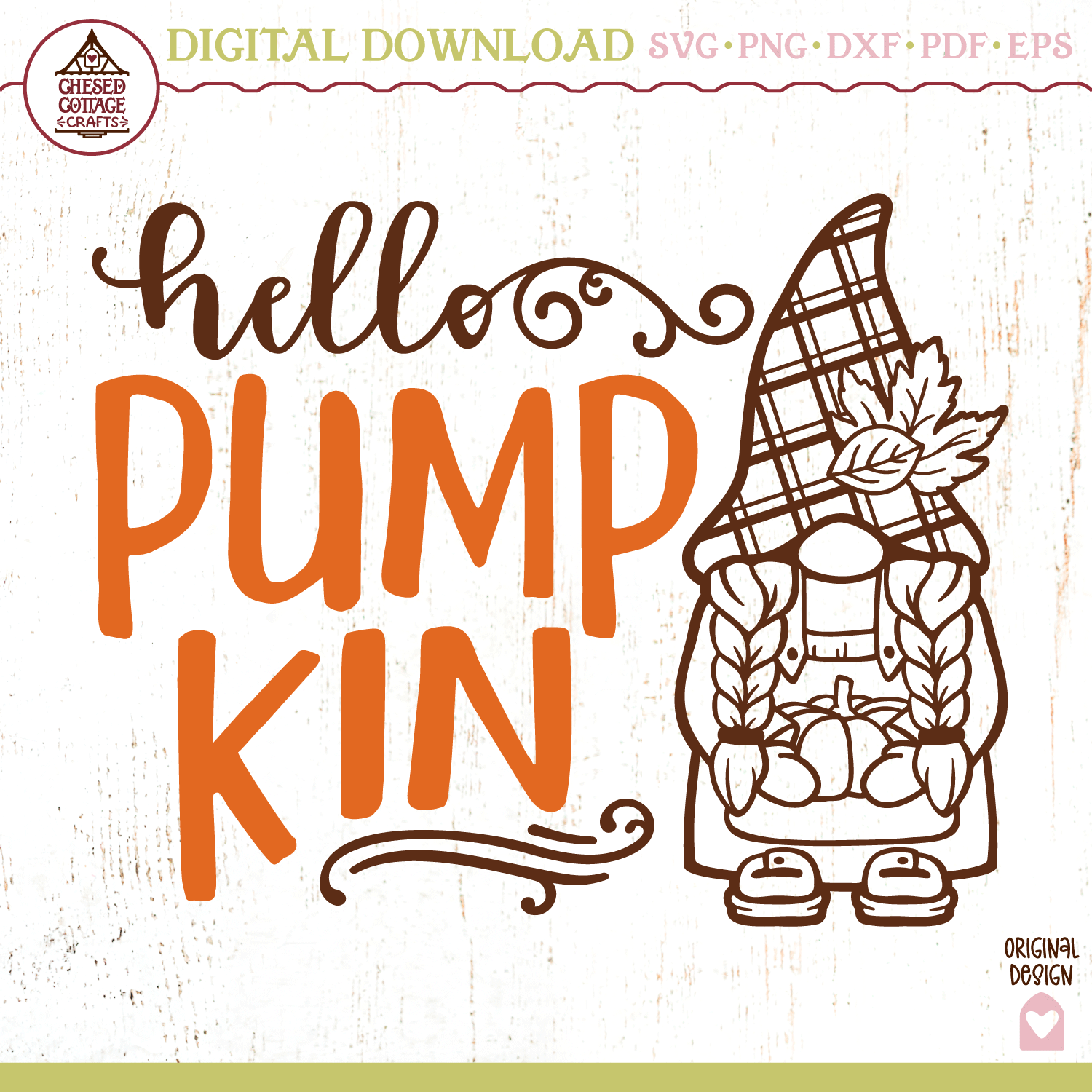 Gnome Hello Pumpkin Fall Crafting Files