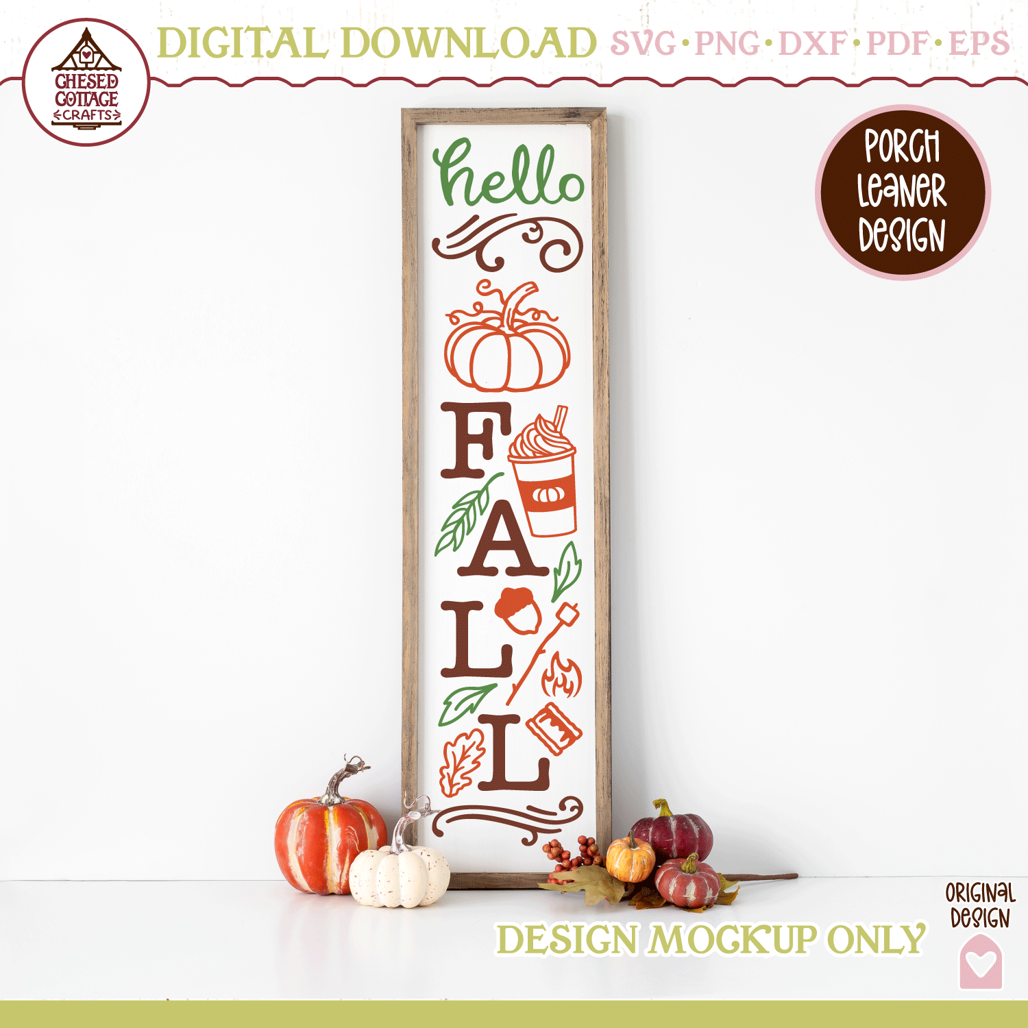 This Hello Fall Porch Sign design is a digital download that contains high quality craft cut and print files that have been created to work for cutting machines, like Cricut and Silhouette. Use this design to brighten up your door entry with a cute fall design.