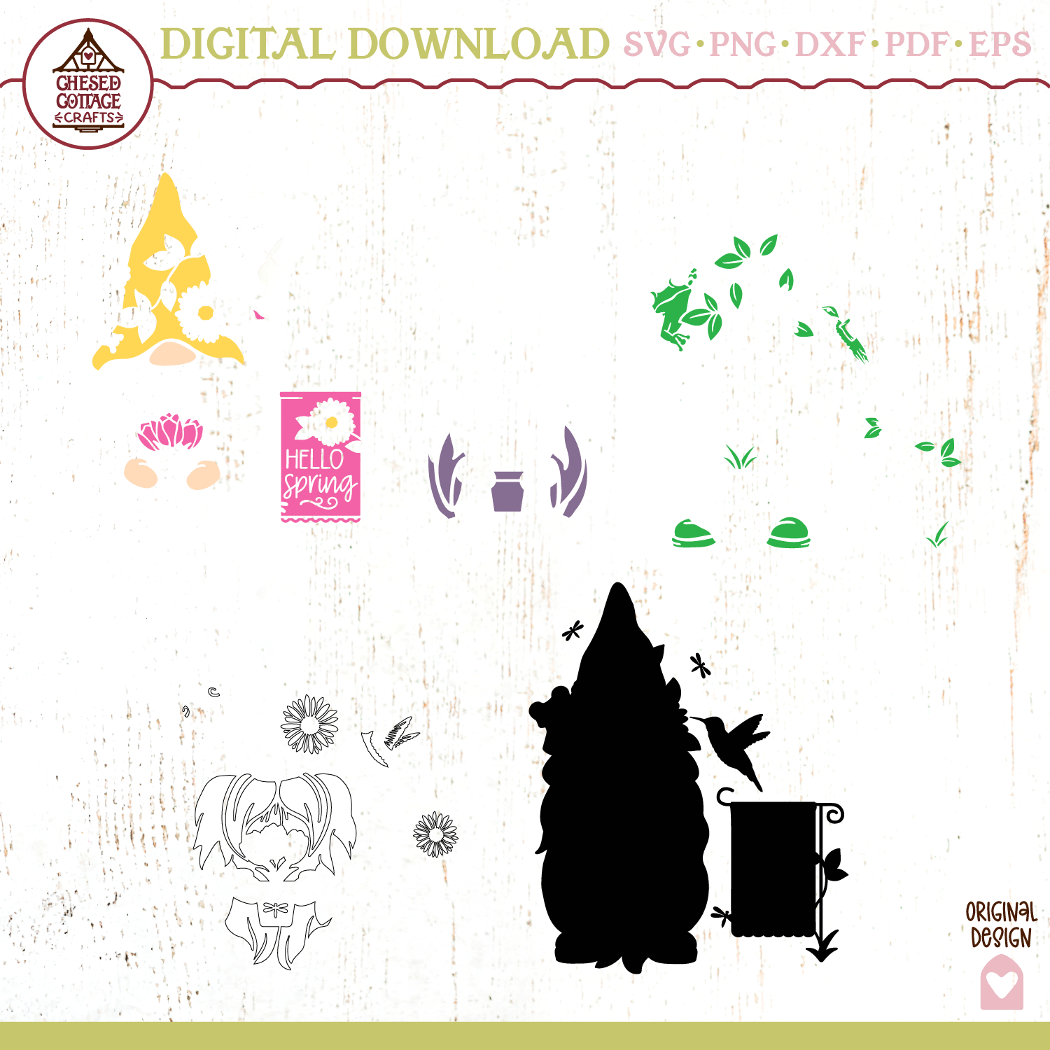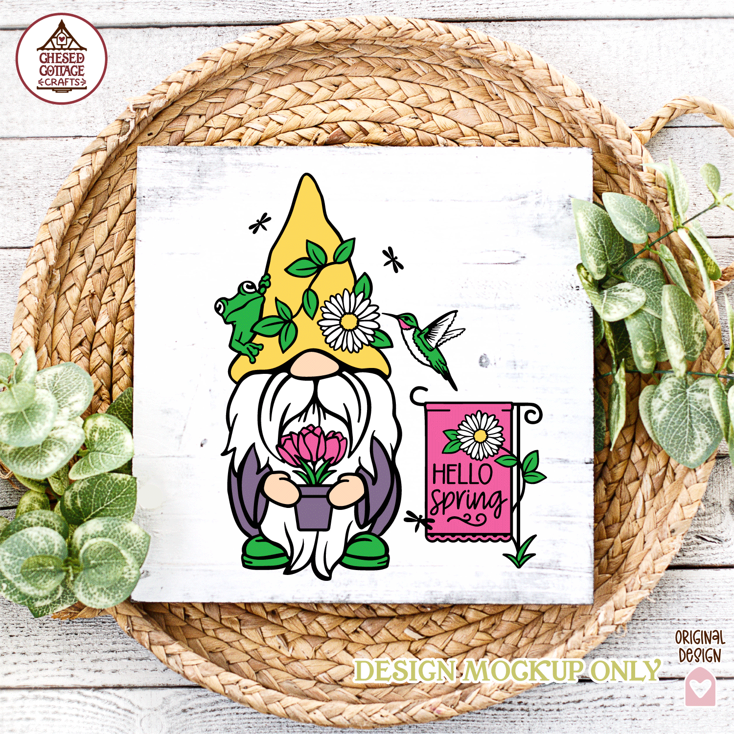 This cute spring gnome design is a digital download that contains high quality craft cut and print files that have been created to work for cutting machines, like Cricut and Silhouette, sublimation printers, laser machines and more. Use this design for many types of projects for home decor items, apparel or your own inspired creation.