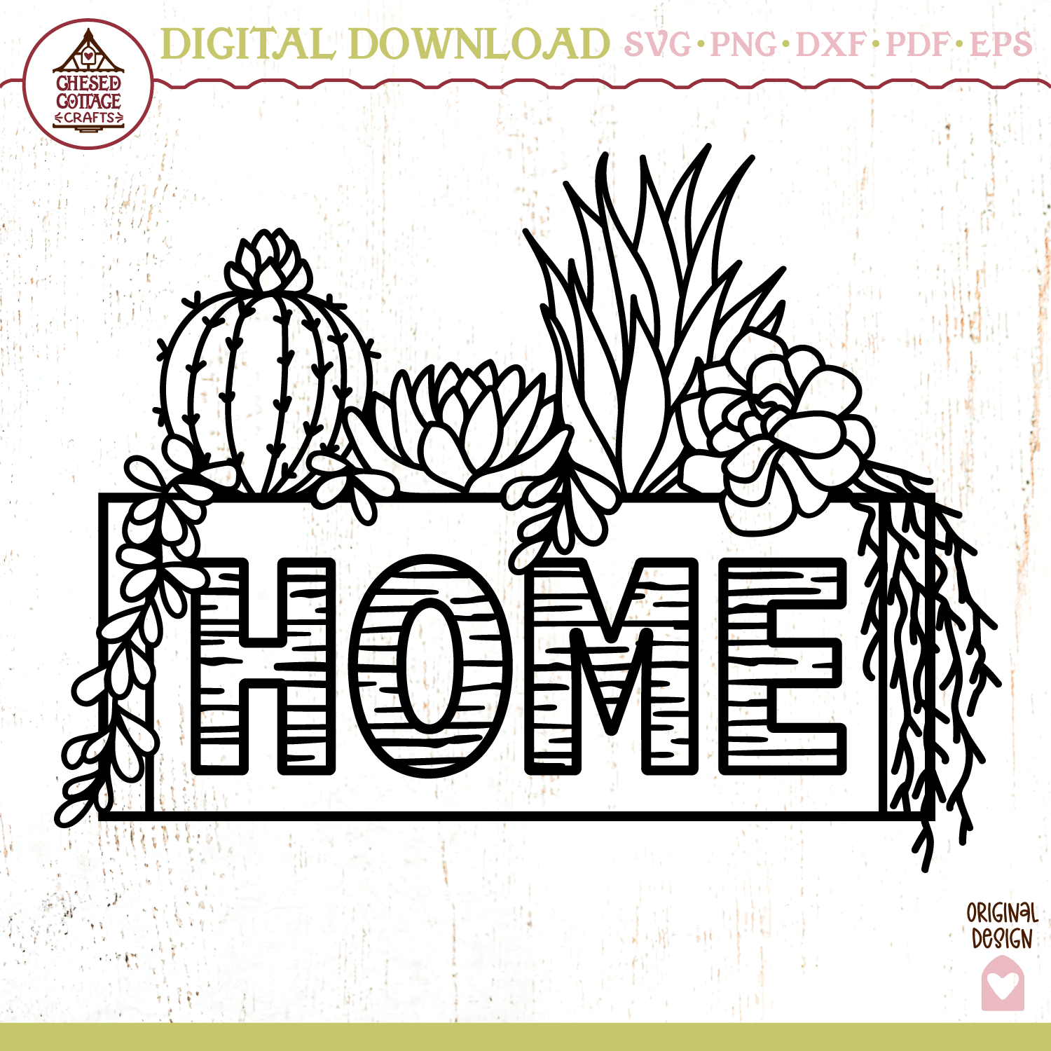 This succulent home planter design is a digital download that contains high quality craft cut and print files that have been created to work for cutting machines, like Cricut and Silhouette and more.