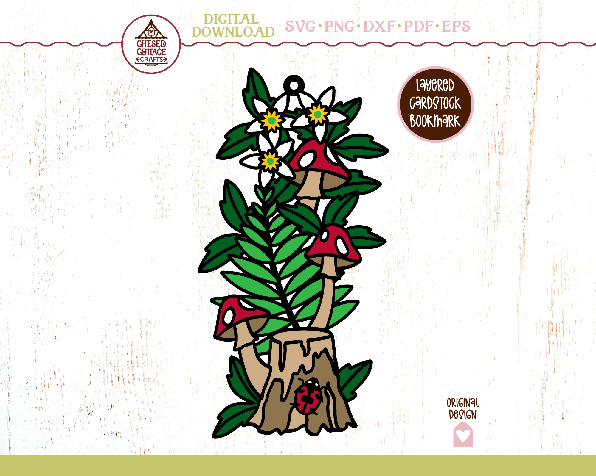 This Mushroom Forest Scene Bookmark SVG file set contains originally designed files that will be perfect for your next crafting project! These bookmark layered paper cut graphics are high quality craft cut files that have been created to work for cutting machines, like Cricut, ScanNcut, Silhouette and more.