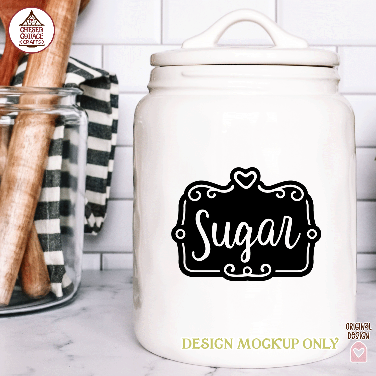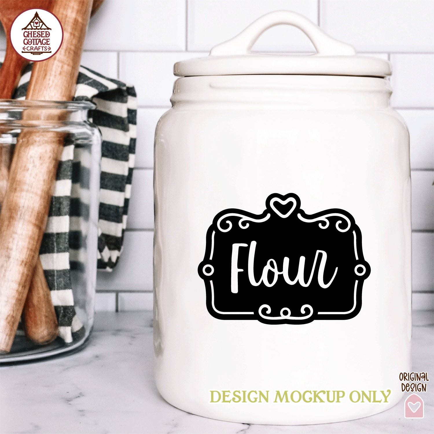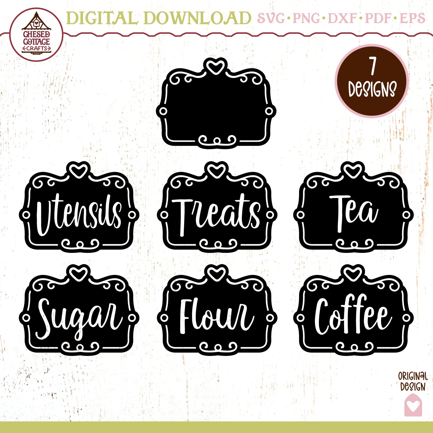 This Scroll Flourish Canister Label set design is a digital download that contains high quality craft cut and print files that have been created to work for cutting machines, like Cricut and Silhouette and more.
