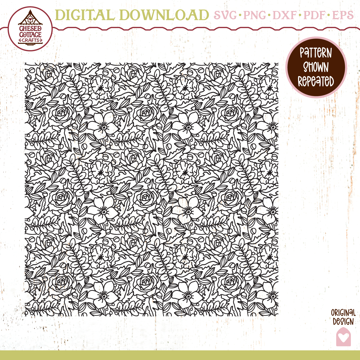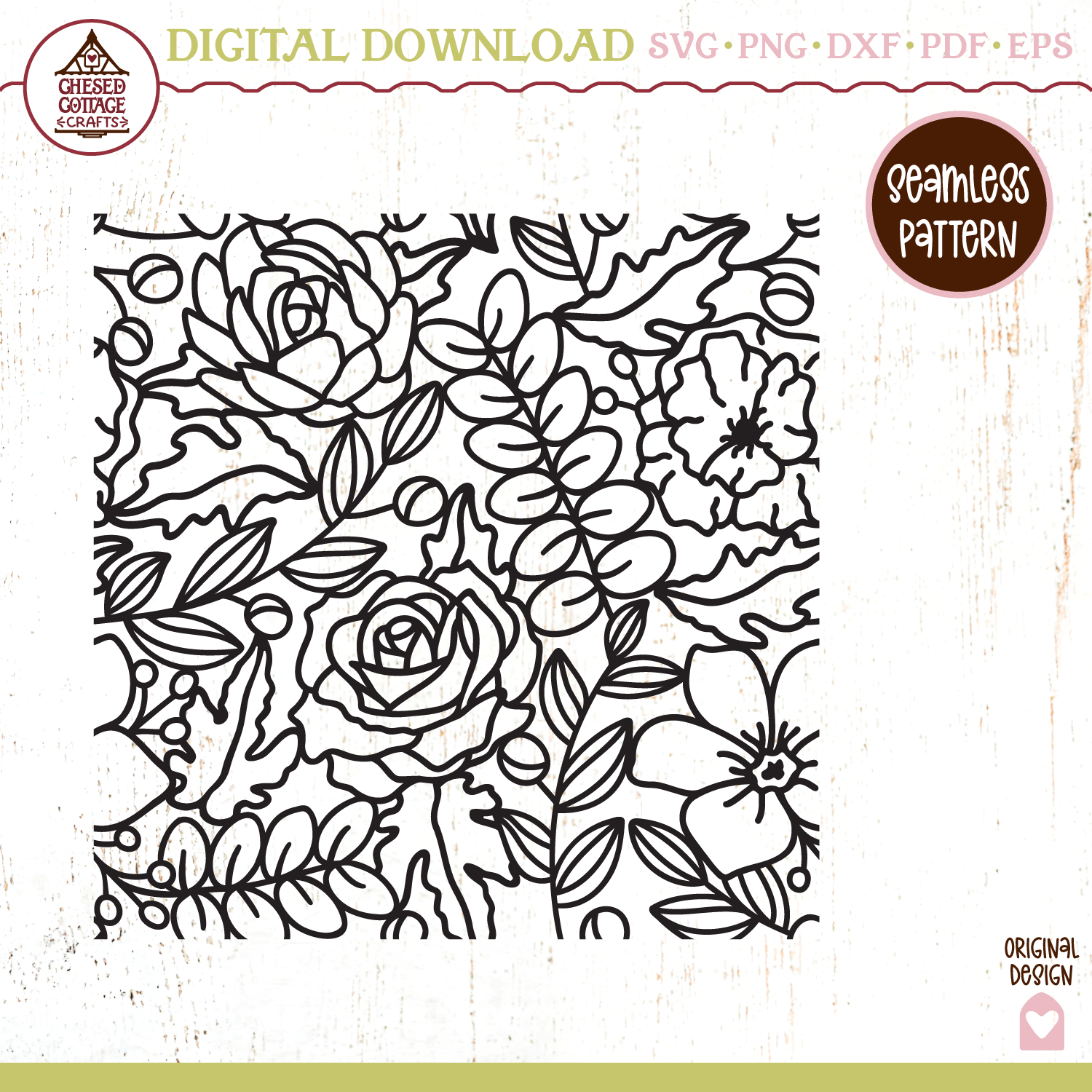 This seamless floral pattern design is a digital download that contains high quality craft cut and print files that have been created to work for cutting machines, like Cricut and Silhouette and more.