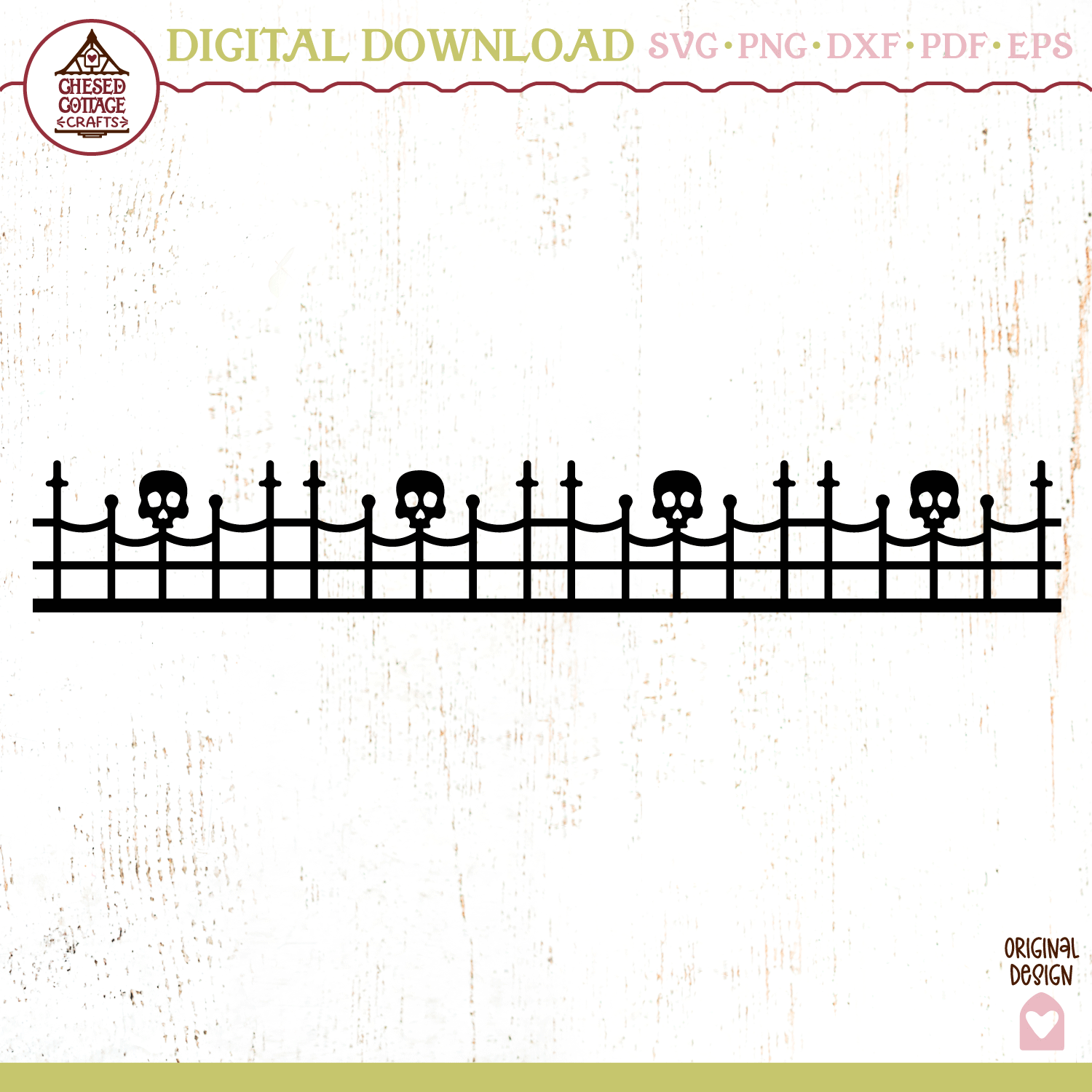 This skeleton fence design is a digital download that contains high quality craft cut and print files that have been created to work for cutting machines, like Cricut and Silhouette, sublimation printers, laser machines and more. Use this design for many types of projects for home decor items, apparel or your own inspired creation. Check out our inspiration gallery for some ideas for creative ways to use our designs.